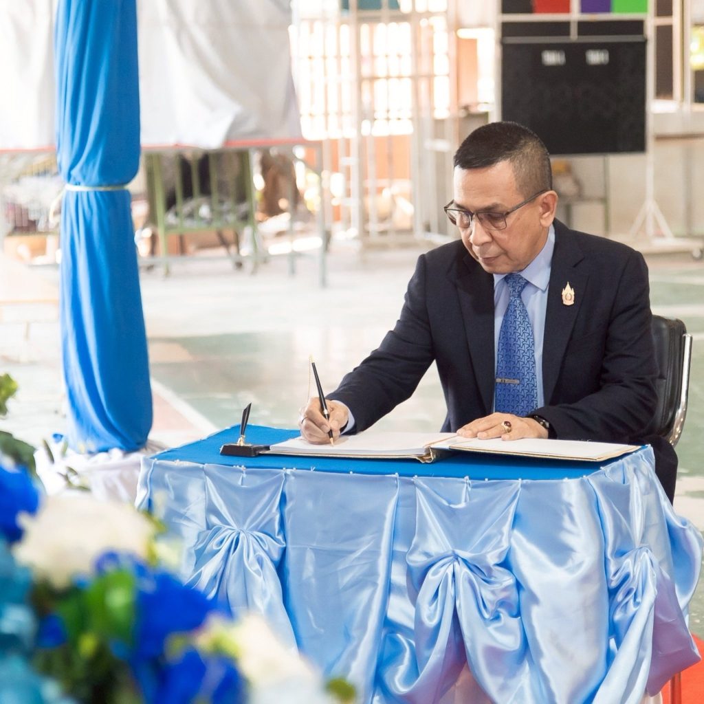 พร้อมด้วยคณะผู้บริหาร คณะครู และนักเรียนนักศึกษา ได้ร่วมลงนามถวายพระพร